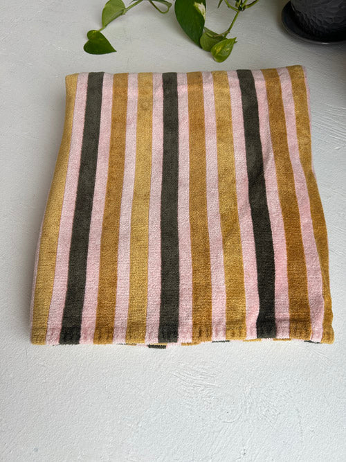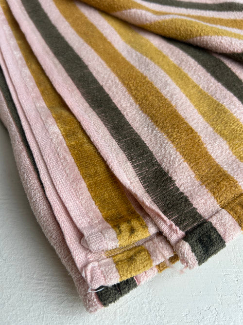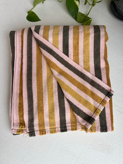 This large striped blanket is made from a soft, terry cloth–like material that feels cozy and comforting to the touch. The textured fabric adds a relaxed, casual vibe, making it perfect for everyday use—whether draped over a sofa, layered on a bed, or wrapped around you for lounging. Generously sized and easy to love, this blanket offers both comfort and style, bringing warmth and softness to any space.