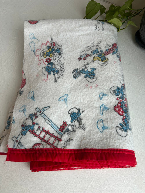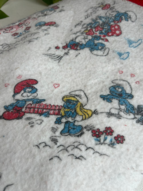Bring a little nostalgia home with this vintage Smurf blanket. Featuring classic Smurf characters and cheerful retro colors, this well-loved piece shows gentle signs of wear that add to its character and story—yet it remains in good overall condition. Soft and cozy, it’s perfect for layering on a couch, using as a cozy throw, or displaying as a fun collectible for any Smurfs fan. A one-of-a-kind vintage find that’s full of personality and charm.